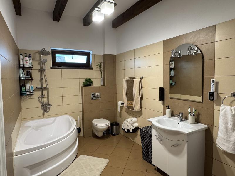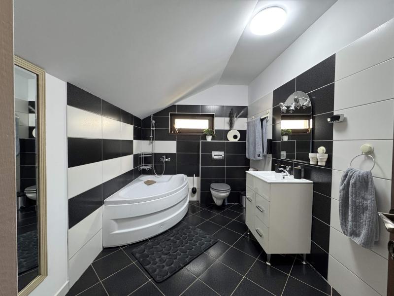 Toate finisajele casei au fost realizate cu materiale de foarte buna calitate, tamplaria este marca Salamander cu geam tripan, iar uzura casei, a mobilierului si electrocasnicelor este una extrem de redusa, deoarece ea a fost locuita perioade foarte scurte din an.